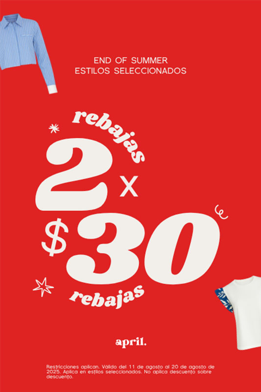 Elige dos prendas de tu preferencia por un precio de $30.00